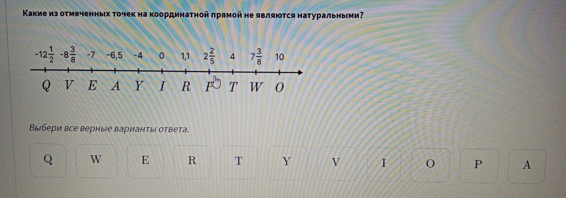 Точки Q, V, E, A, Y, I, R, P, W - не натуральные