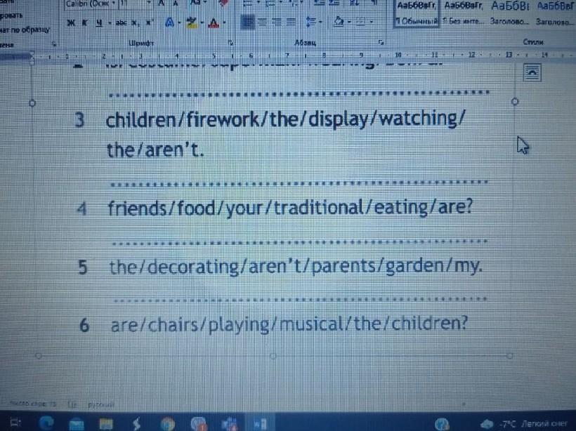 В 6) му реченні ніби пропущені слова : musical instruments on chairs.