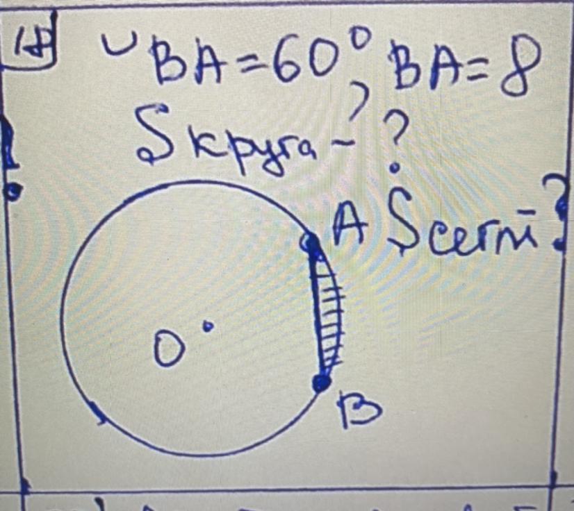 Sсегм=Sсек-S(∆OAB)=32π/3-16√3=