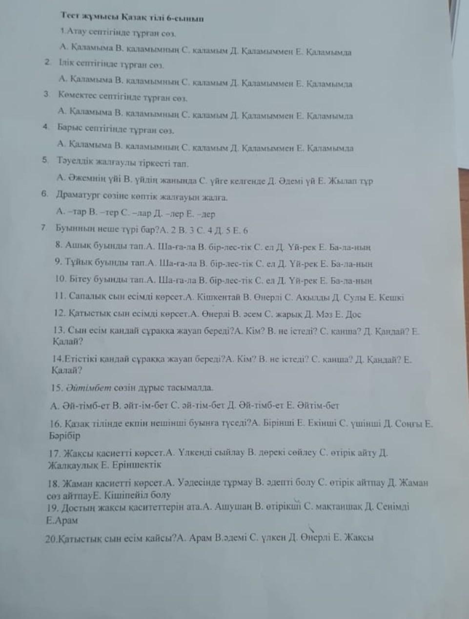 5 Тәуелдік жалғаулы тіркесті тап. А. Әжемнiн уйi В. үйдiн жанында С. уйге келгенде Д. Әдемі үй Е. Жылап