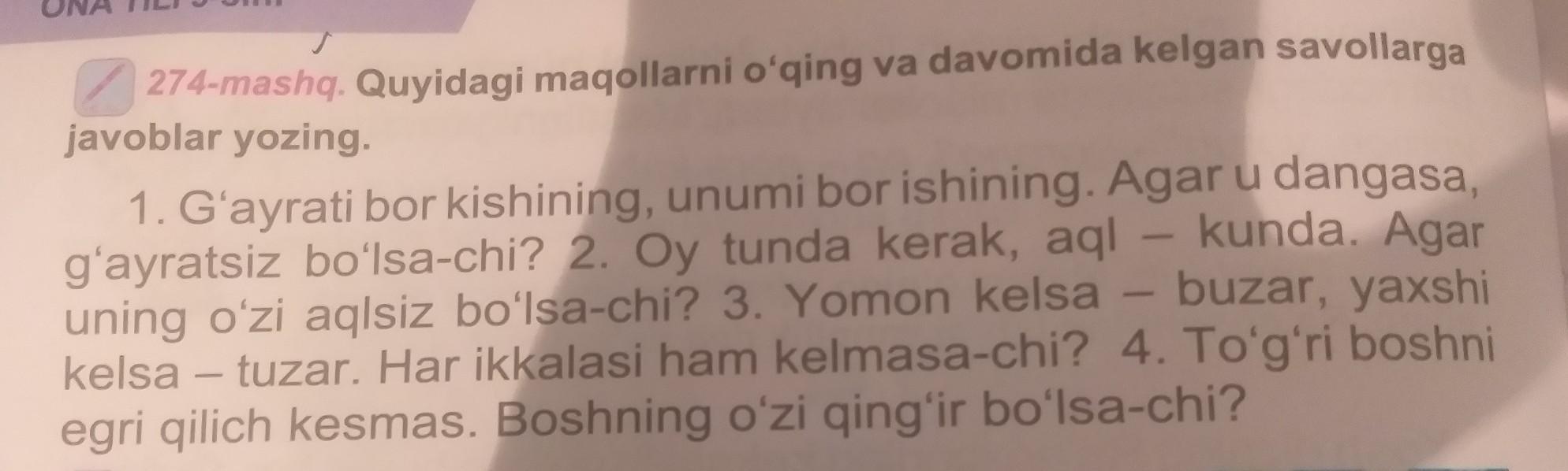 Узбек тили. 4-синф 105 дарс 114 бет 3 машқ илтимос ярдам беринглар
