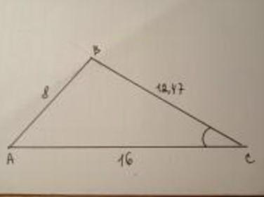 Дано: ΔАВС, АВ=8 дм; ВС=12,47 дм, АС=16 дм. ∠С - ?