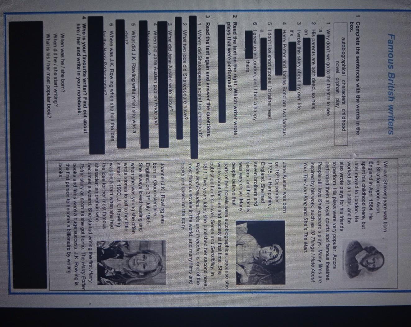 I. 1. a play 2.orphan 3. autobiographical 4. characters 5. novel 6.childhood
