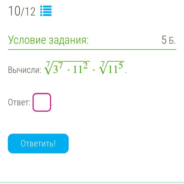 7 корень из 33^7, упрощаем. Ответ: 33