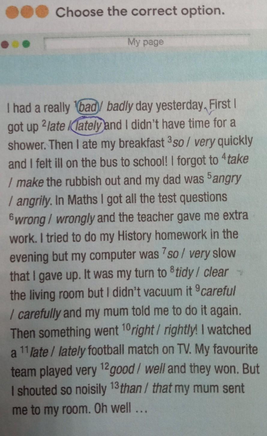 2. late 3. very quickly 4. take 5. angry. 6. wrongly 7. so slow 8. to tidy