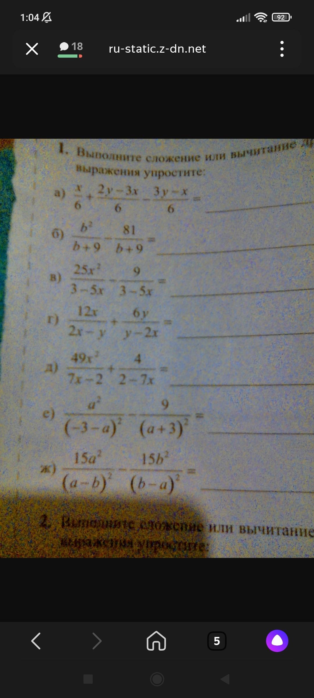 Д) первое действие подобное, общий знаменатель (7x - 2), 49x²-4 - раскрытый квадрат разности ( соберём (7x-2)(7x+2), сокращаем