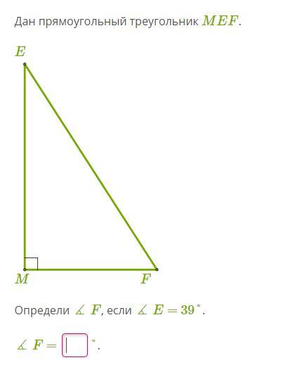 Еще мы знаем угол Е, он равен 39. Сумма углов в любом треугольнике равна 180, поэтому можно найти F: