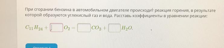 которой образуются углекислый газ и вода. Расставь коэффициенты в уравнении реакции: