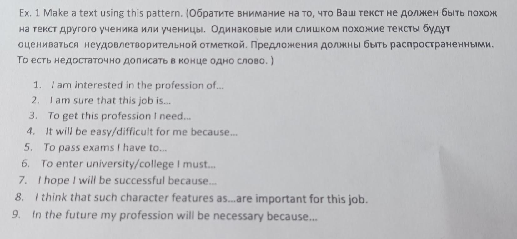 8. I think that such character features as perseverance, love-making, willingness to hear, discipline, work experience, courage, initiative, creativity, kindness are important for this job.
