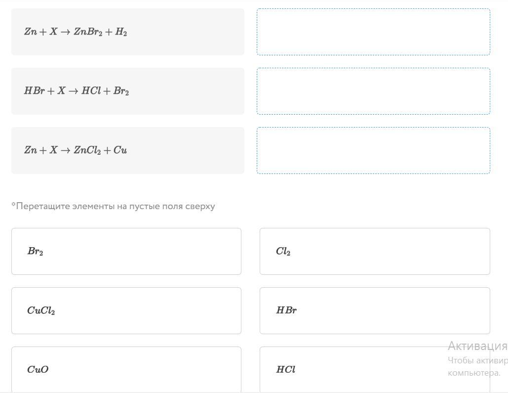 В схеме реакции замещения (без коэффициентов) пропущено вещество X. Определите, о каком веществе X идёт речь: