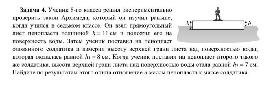h₁ = Н - Н₁ = 11см - 8см = 3см - глубина погружения листа с одним солдатиком