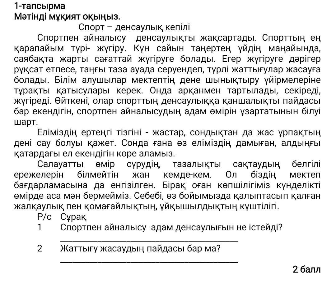 1.Спортпен айналысу арқылы адам өз денсаулығын нығайтады.