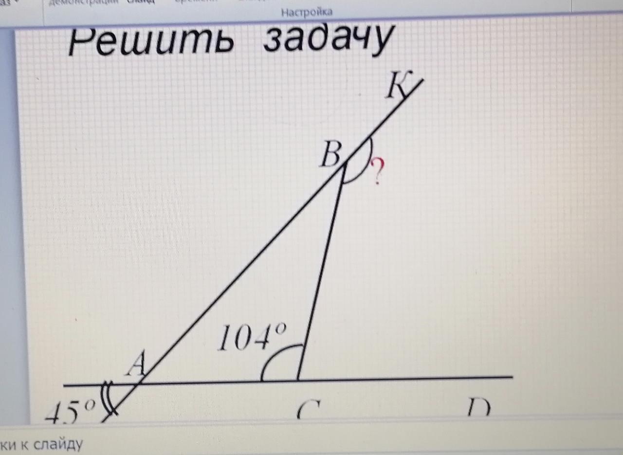 угол ВАС = углу 45° (там имя его не видно) =45° как вертикальные