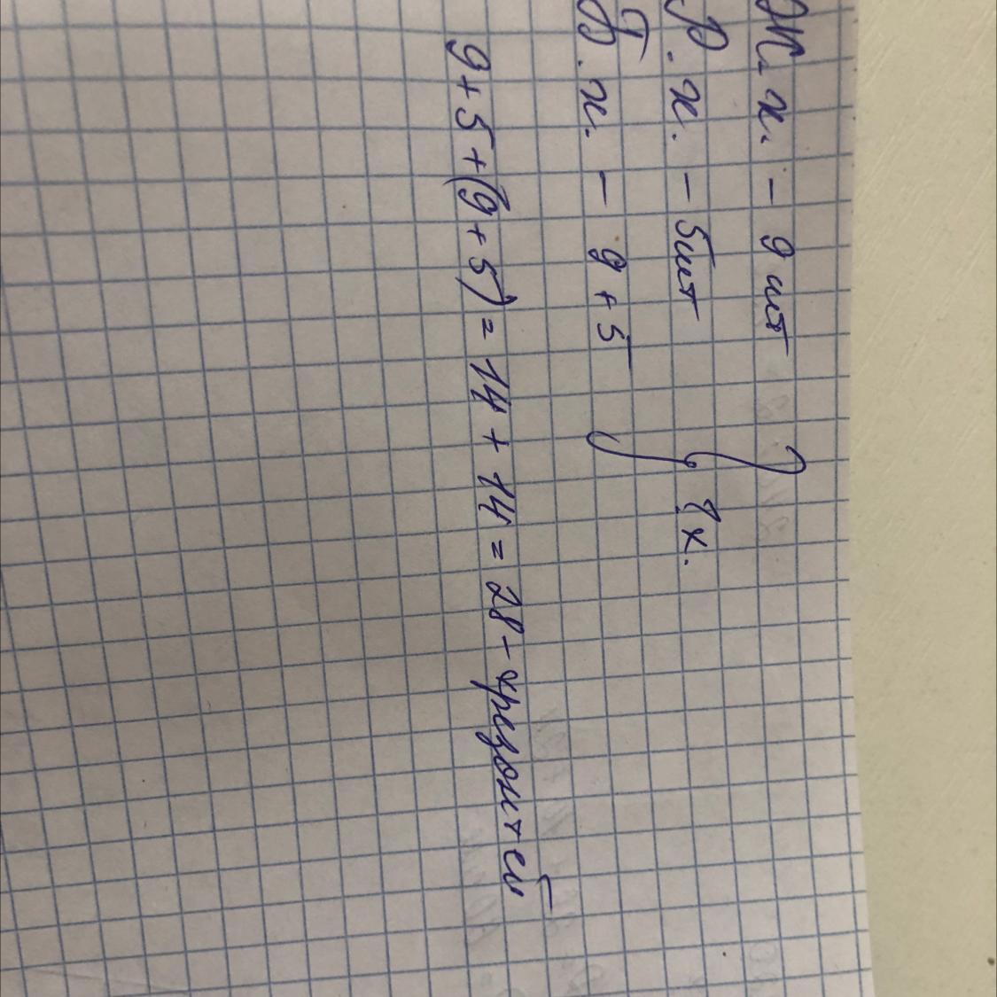 Для букета флорист использовал 9 желтых хризантем и 5 розовых, а белых хризантем столько, сколько желтых и розовых вместе. Сколько всего хризантем использовал флорист для букета?