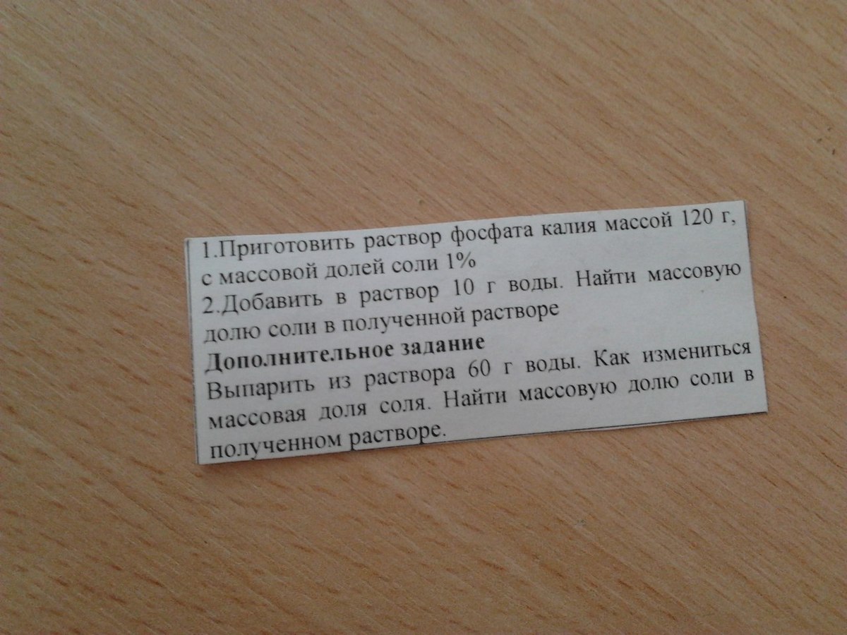 Приготовить раствор фосфата калия массой 120г. с массовой долей соли 1%