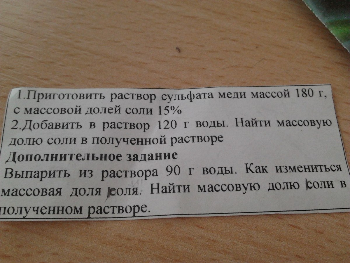 Приготовить раствор сульфата меди массой 180г. с массовой долей соли 15%