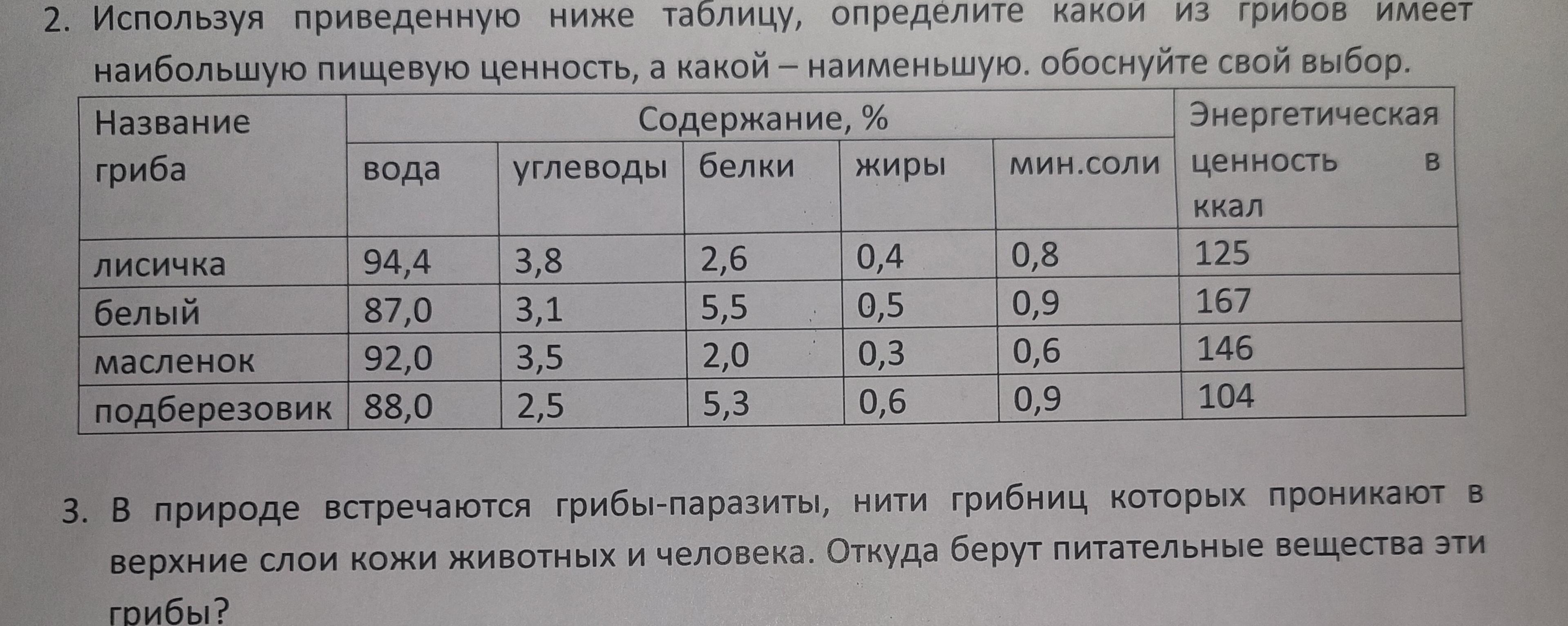 2.Белый гриб, за счёт калл. и соответственно белков и минеральных солей.