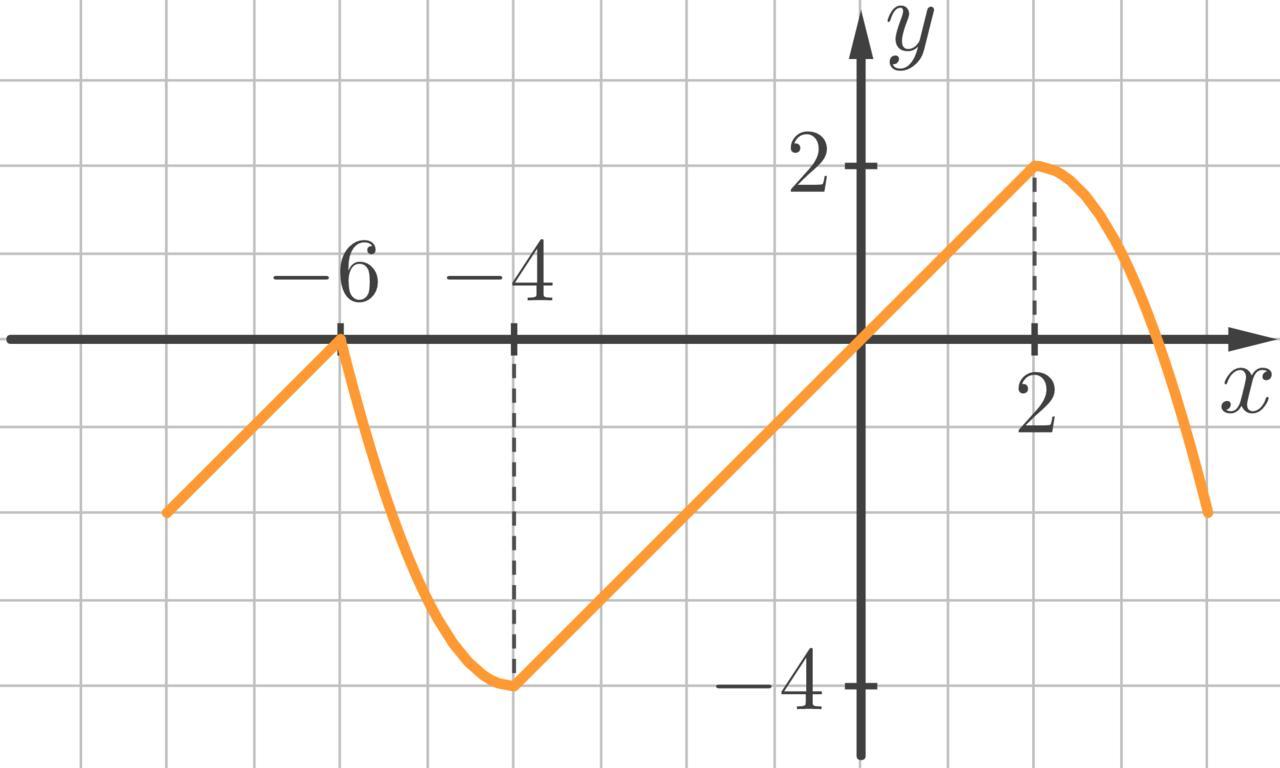 Найдите промежутки возрастания функции, график которой приведён на рисунке.