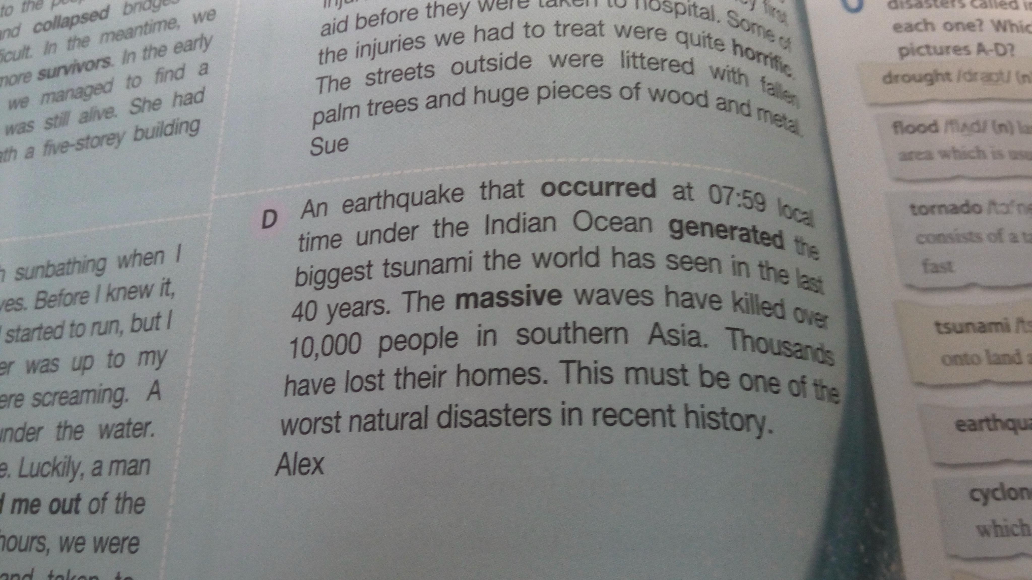 В части D их нет, а выше видно последнее предложение, так в нем есть: The streets outside were littered with fallen palm trees .... .