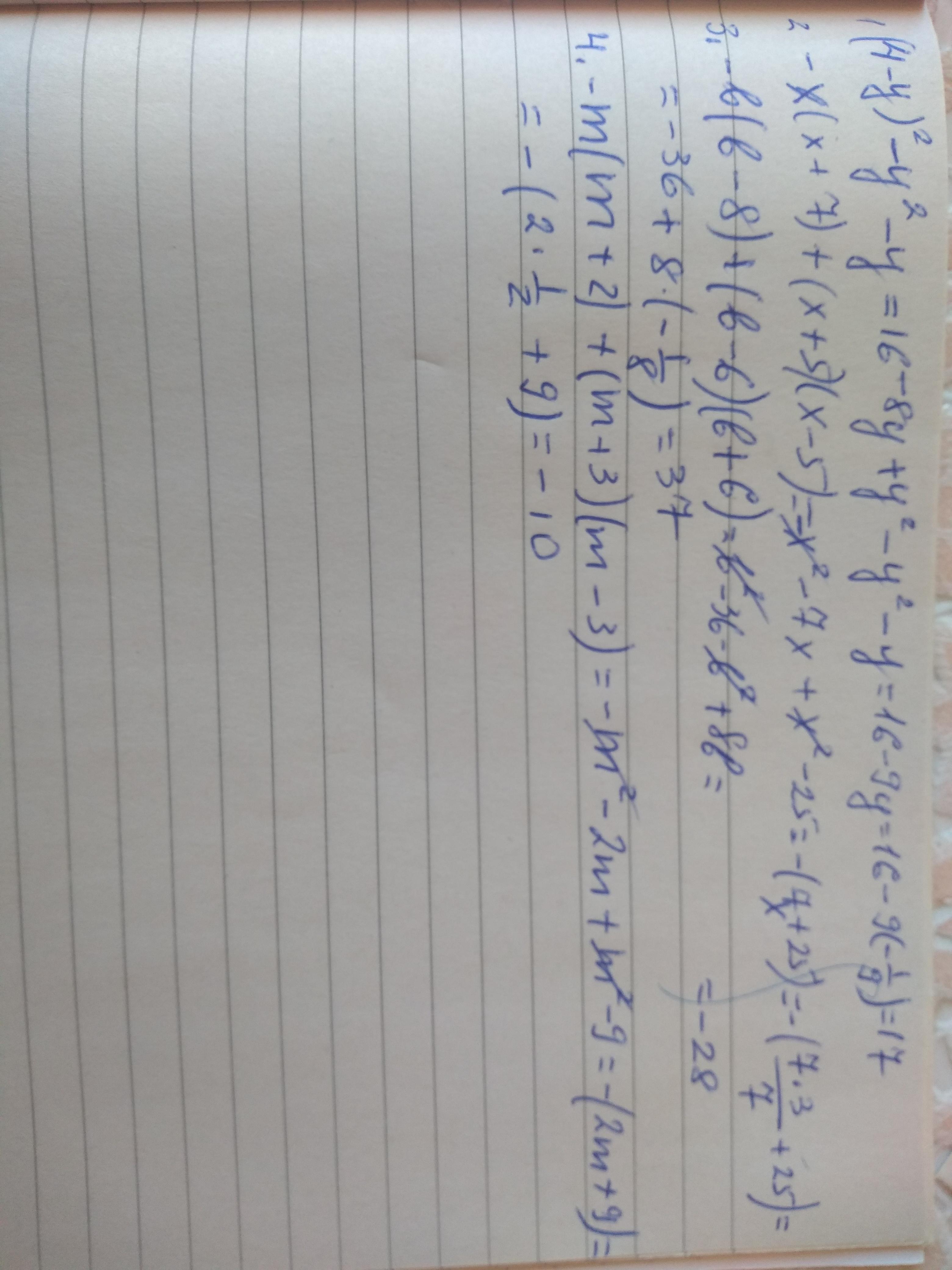 Найдите значение выражения (4-y)²-y(y+1) при y=-1/9