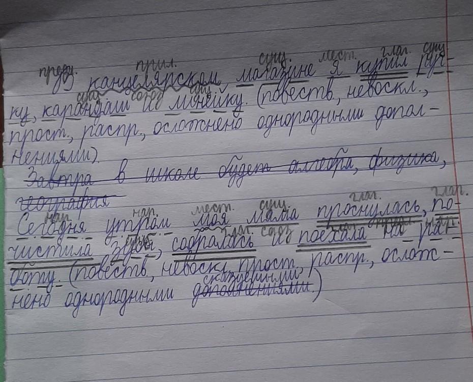 Сегодня утром моя мама проснулась, почистила зубы, собралась и поехала на работу. В канцелярском магазине я купил ручку,карандаш и линейку. Я вспоминаю, как три года назад ездил со своей семьей в Египет и в Турцию. Завтра в школе будет алгебра,физика, география и биология. Мой папа купил мне три карандаша синего,красного и зелёного цвета.