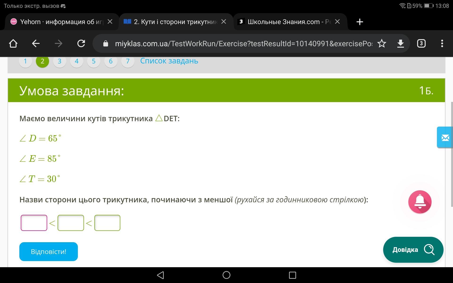 Я ничего не понял, но ответ: E<D<T т.к. против меньшего угла лежит большая сторона