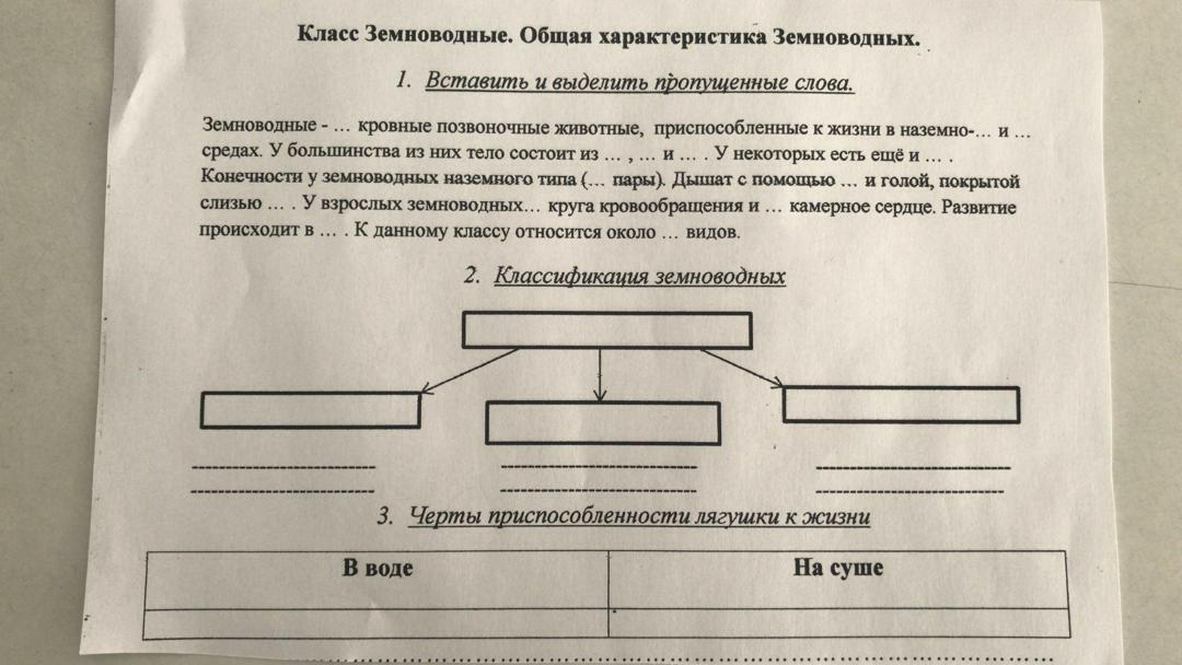 Земноводные - холоднокровные позвоночные животные, приспособленные к жизни в наземно - воздушной и водной средах. У большинства из них тело состоит из головы, туловища и конечностей. У некоторых есть ещё и хвост.