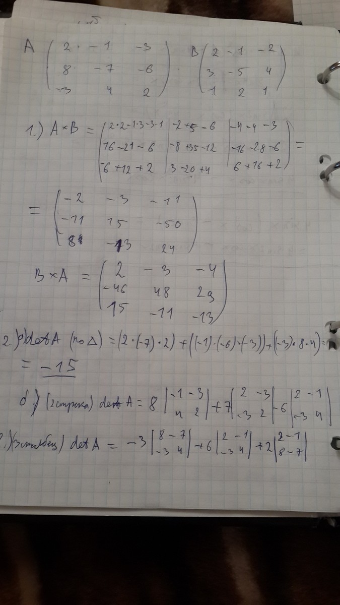 2)Определитель матрицы А а)по правилу треугольников,б)разложением по элементам второй строки,в)разложение по элементам третьего столбца