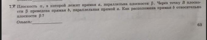 3)Точка B лежит в плоскости b, а т.к. прямая b проходит через точку B и также параллельна плоскости b, то прямая b лежит в плоскости b