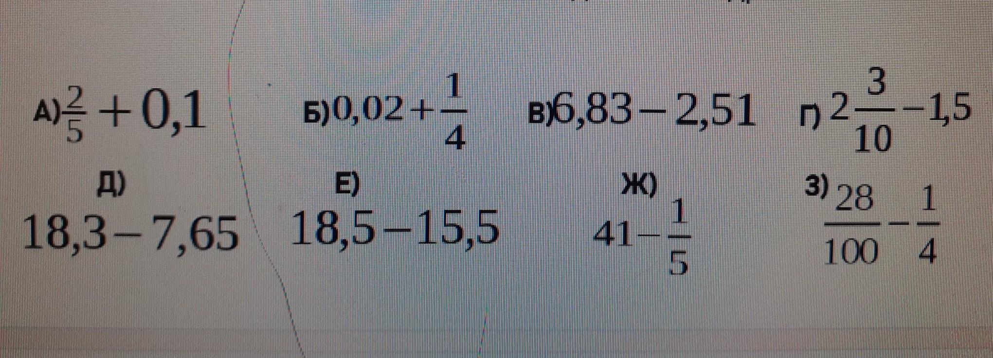 д) 18,30 - 7,65 = 10,65