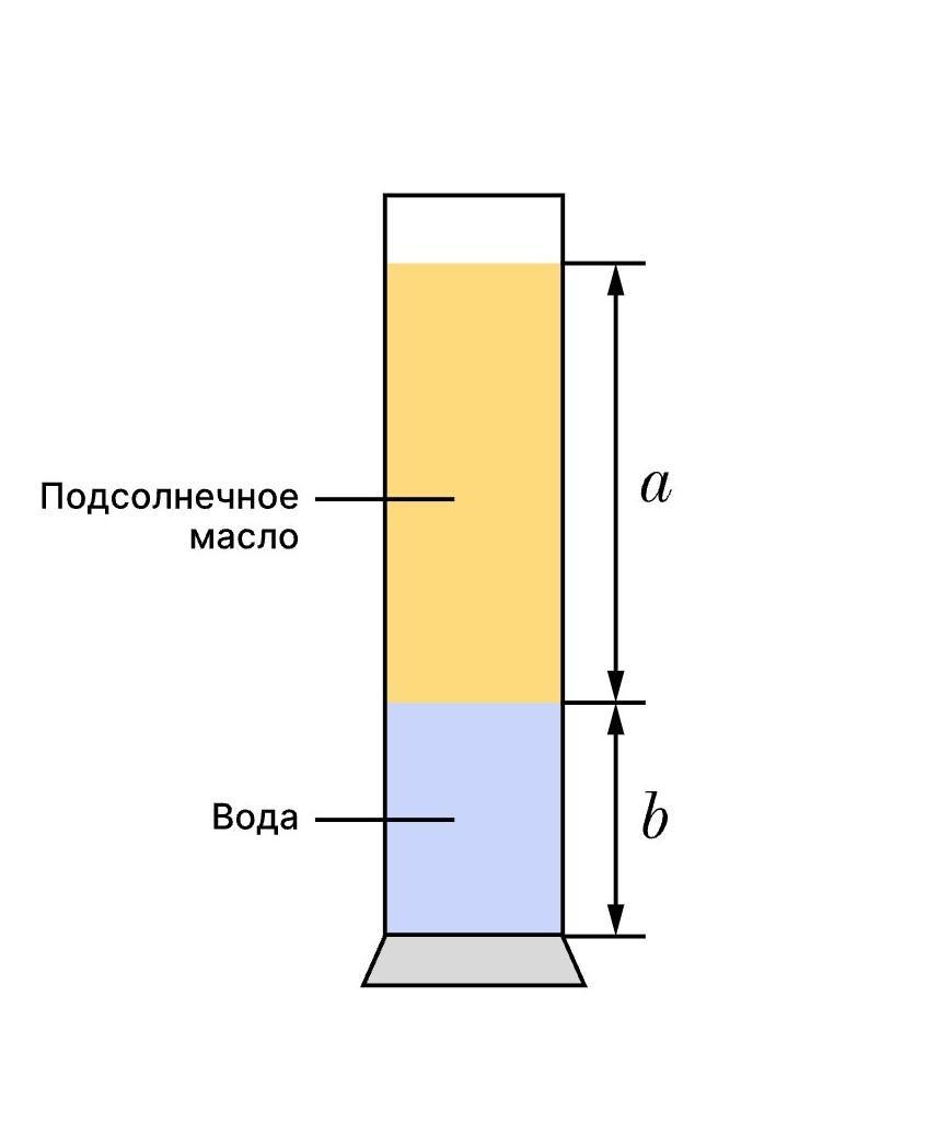 Чему равно давление на дно емкости, созданное двумя жидкостями, если a = 90см , b=28 см? Ответ запиши в Па.