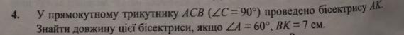 В прямоугольном треугольнике АСК СК лежит напротив угла 30 градусов, значит АК=2*СК АК=28*sqrt(3)/3 см