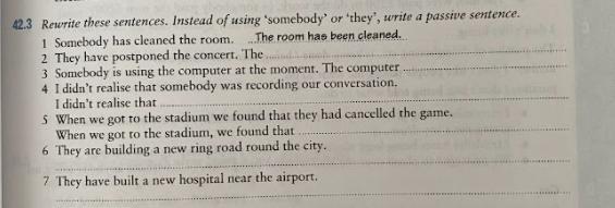 7) They have built a new hospital near the airport. / A new hospital has been built near the airport.