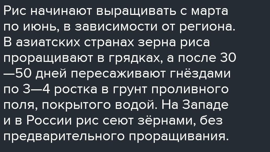 9. Запишите 3-5 предложений по каждому пункту. Как выращивают рис, Рис — белое золото, Легенда о появлении риса