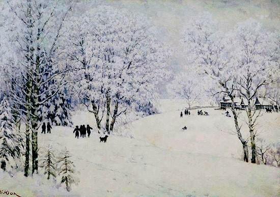 Ответ: Зимние каникулы... Все дети вышли из своих домов, чтобы подышать этим прекрасным, свежим и морозным воздухом, поболтать о всякой всячине, слепить снеговика, потрогать пëсика твоего друга, и просто послушать, как под твоими ногами хрустит белый, как сахар, снег. Мужчина куда-то скачет на лошадке, деревья стоят в снежной шубе, дома стоят неподалёку, где мамы ждут своих сыновей с прогулки. Зима — великолепное время года!