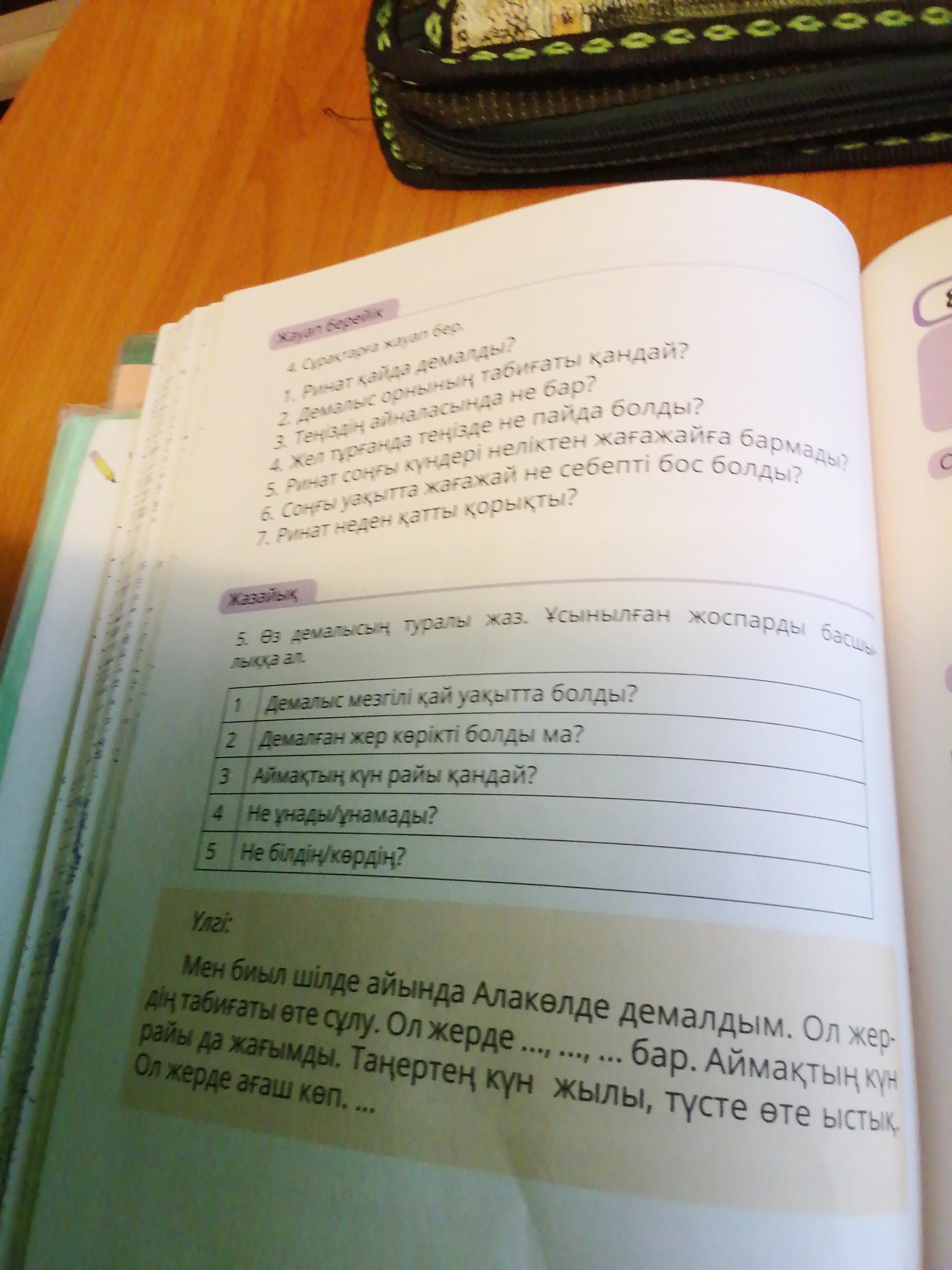 4)Не ұнады/ұнамады? маған барлығы да ұнады себебі аинала дағы барлық затардың бәрі менің көңілінен шықта