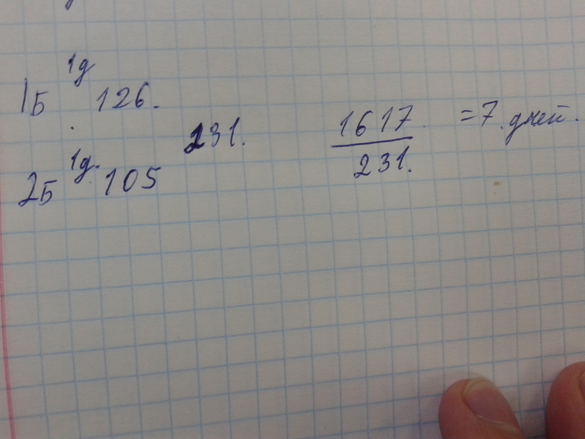 одна бригада рабочих делает за 12дней 1512деталей другая1260.сколько дней потребуется для изготовления 1617 деталей если обе бригады будут работать вместе с той же производительностью