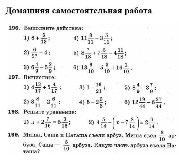 №199 - 1) 3/10 + 5/10 = 8/10 2) 10/10--8/10=2/10 Ответ : 2/10=1/5