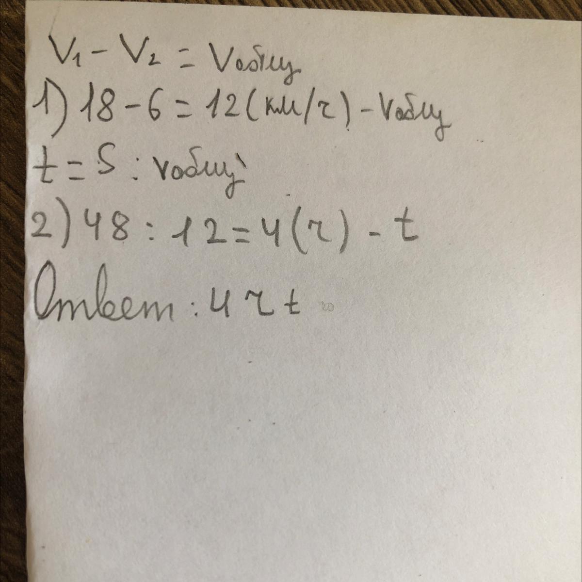 1) 48+6-18=36(км) расстояние между ними через 1 час
