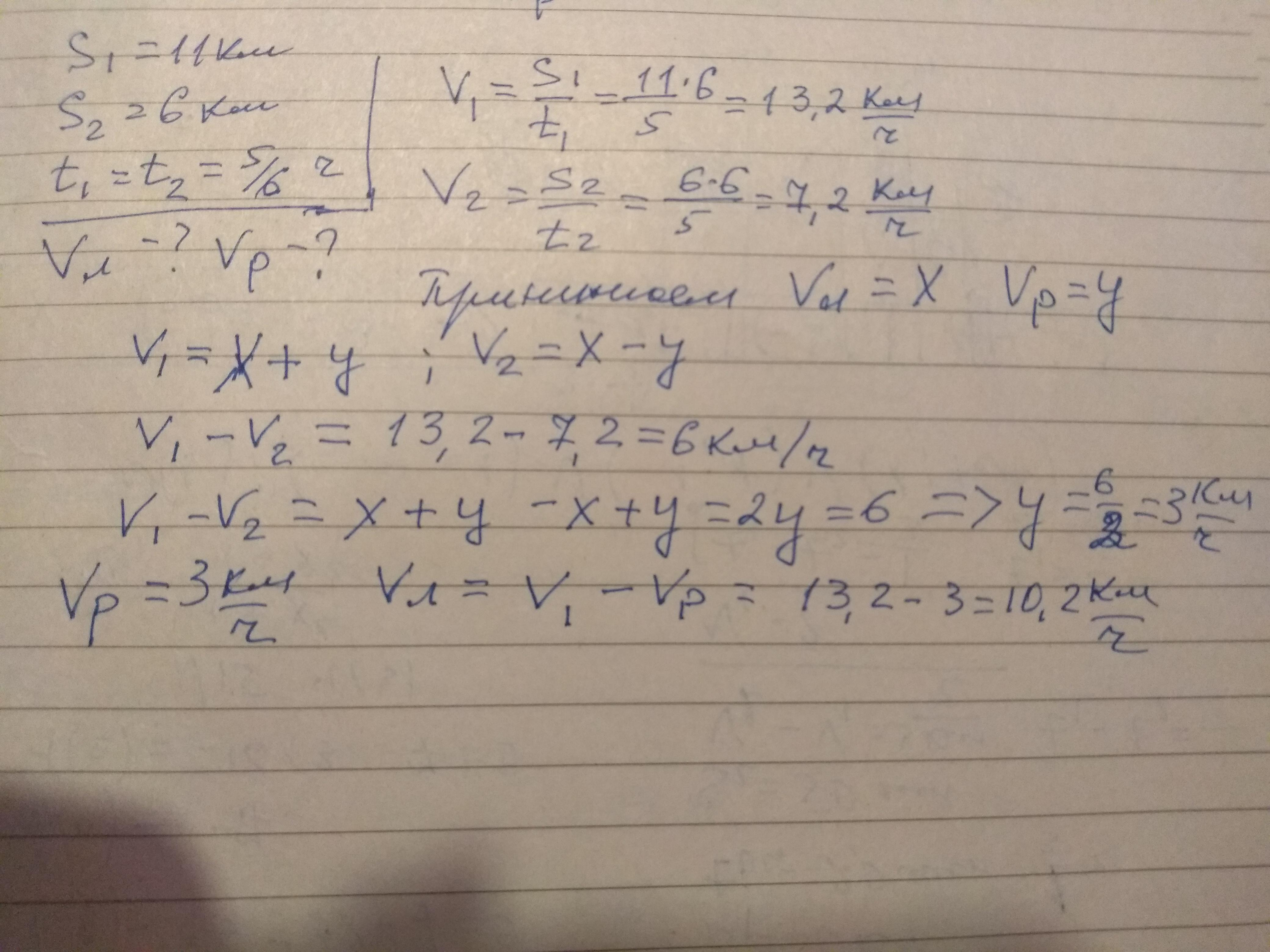 80. Моторная лодка проплыла 33 км по течению реки и повернула назад за 3 ч 20 мин. Найдите собственную скорость лодки и скорость течения реки, если известно, что 11 км по течению и 6 км против течения она преодолевает за 50 мин.