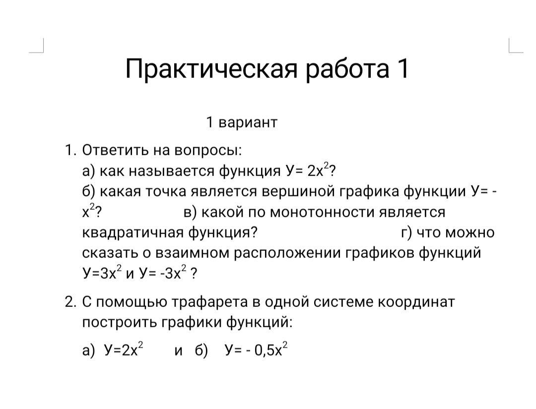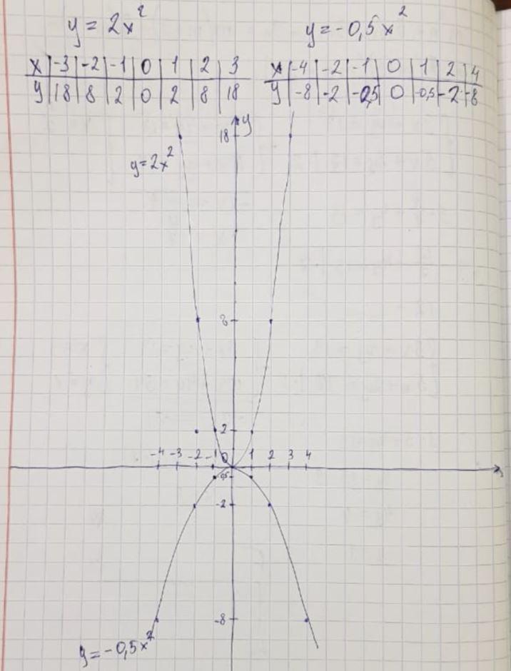 г) у=3х^2 и у=-3х^2 будут примерно так же отображены, как в задании 2, только ветви от оси У у той и другой функции будут на одинаковом расстоянии.