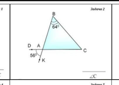 угол С=180- угол В- угол ВАС=180-64-56=60°