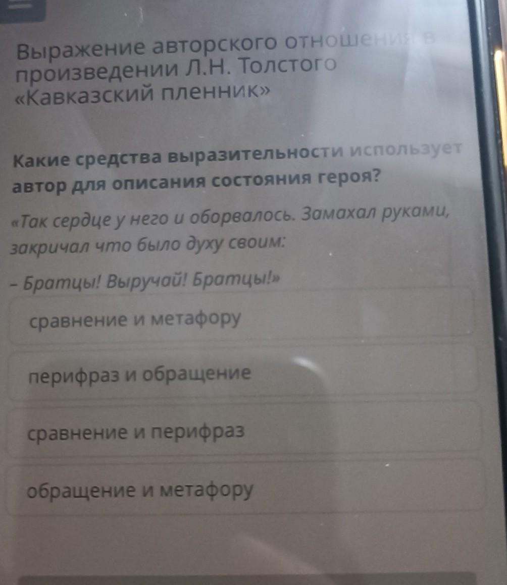 Выражение авторского отношения в произведении Л.Н. Толстого «Кавказский пленник» Не удае сайт Пре Какие средства выразительности использует автор в описании пейзажа? «Стали снеговые горы из белых – алые; в черных горах потемнело; из лощин пар поднялся, и самая та долина, где крепость наша должна быть, как в огне загорелась от заката». р Про сравнение и перифраз ER эпитет иметафору перифраз и эпитет сравнение и метафору Важно знать!