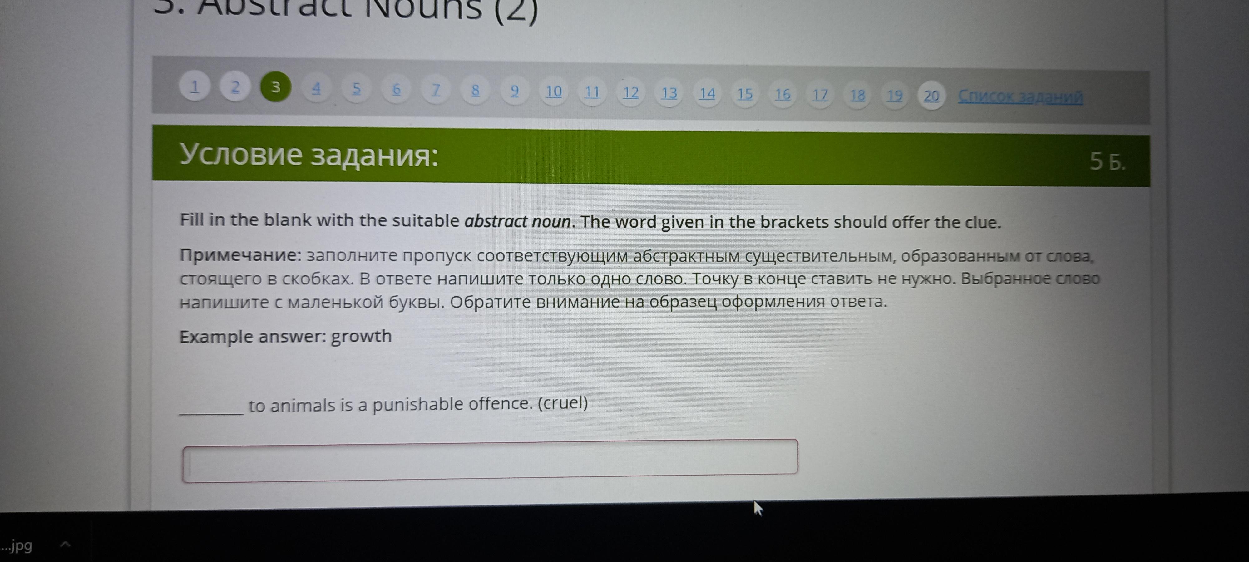 An abstract noun is a noun that refers to an idea or a general quality. The abstract noun for adjective "cruel" is "cruelty".