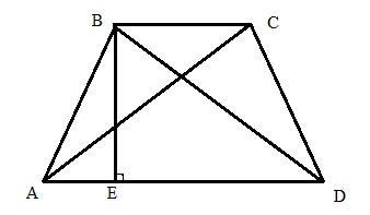 основа AD рівнобічної трапеції АВСD ділиться висотою BE на відрізки довжиною 5 і 16 см, а довжина бічної трапеції 13 см. Знайти діагоналі трапеції