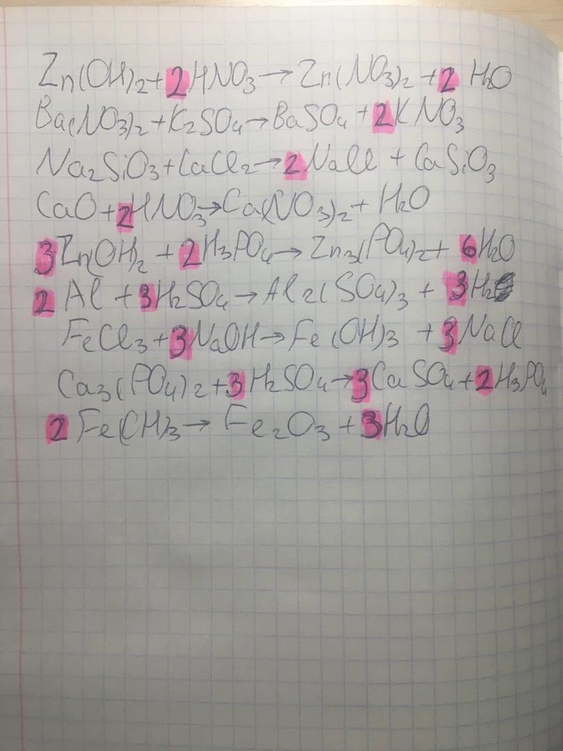 1) Zn(OH)2+ HNO³→Zn(NO³)² +H²O