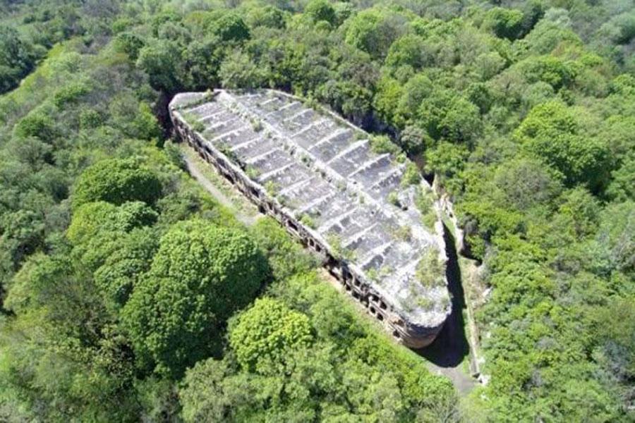 На фото: вхід до форту; і сьогодні напівзруйновані будівлі вражають; вигляд форту з висоти пташиного лету