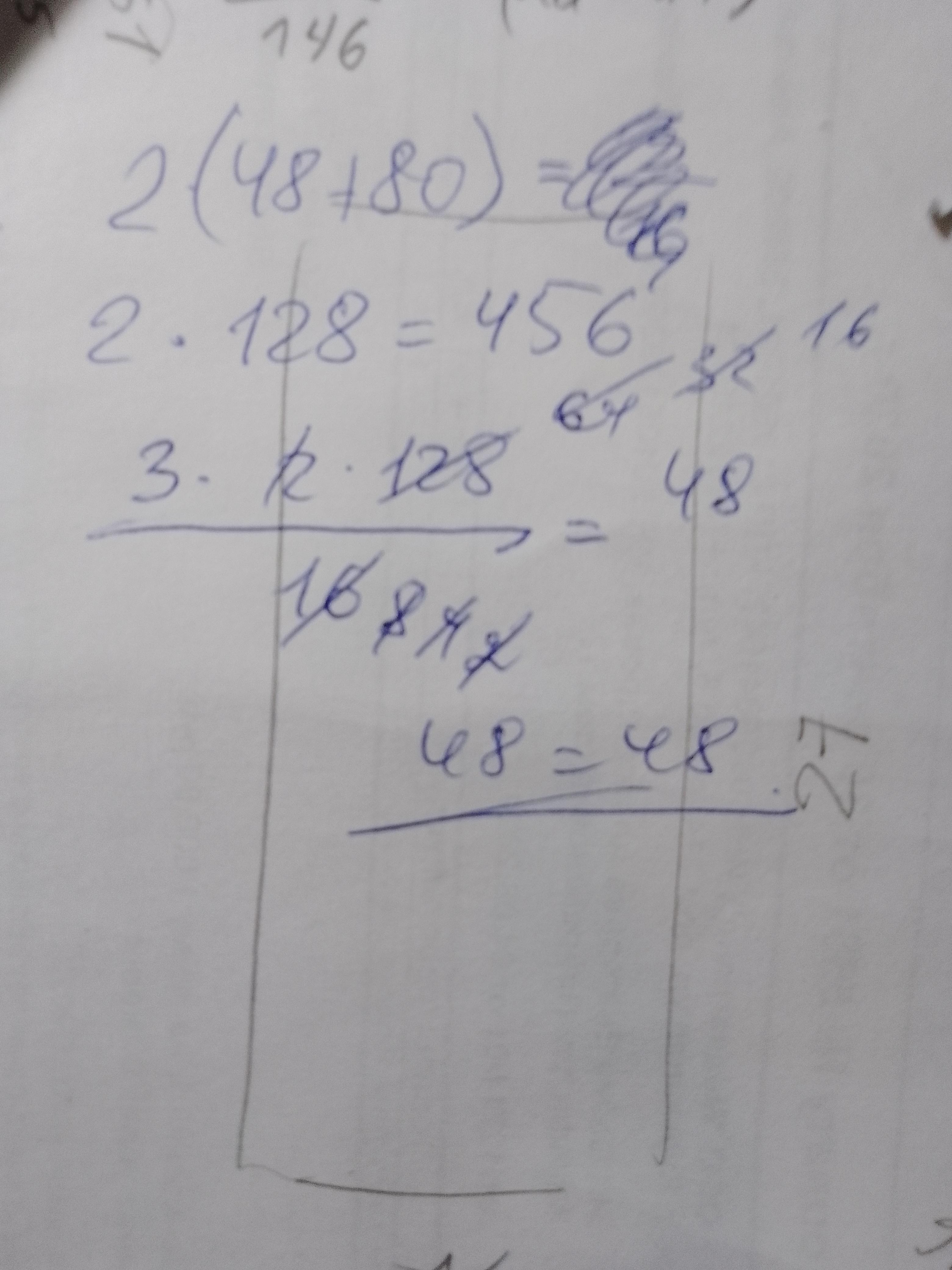 48 : 3/16 = 48 * 16/3 = 16*16 = 256см периметр