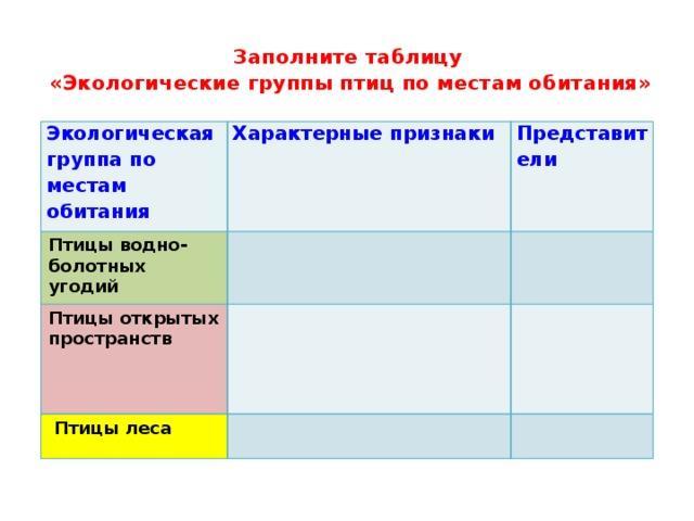 Представители: 1) цапли, журавли 2) кулики 3) фламинго