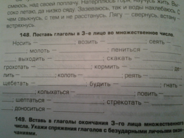 носят,возят,сеют,молотят,пенятся,выходят,скачут,грохочут,кормят,делят,колют,реют,щебечут,будят,гонят,колышутся,ловят,шепчутся,стрекочут,доносятся
